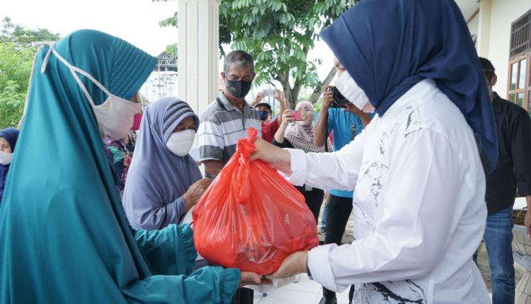 Walikota Ir Hj Tatong Bara dan Wakil Walikota Nayodo Koerniawan (TB-NK) turun langsung membagikan paket bantuan sembako kepada masyarakat terdampak covid-19, Sabtu (13/06/2020).