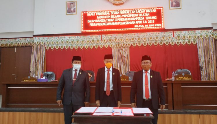 BOLSEL – Dewan Perwakilan Rakyat Daerah (DPRD) Kabupaten Bolaang Mongondow Selatan menggelar paripurna dalam rangka tahapan ramperda tentang pertangungjawaban pelaksanaan APBD tahun 2019