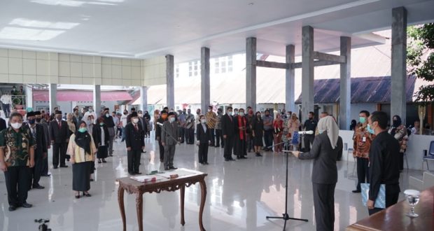 Pelantikan dilaksanakan dua tempat yakni di Aula Rudis Wali Kota dan aula Kantor Walikota, Jumat (19/06/2020).