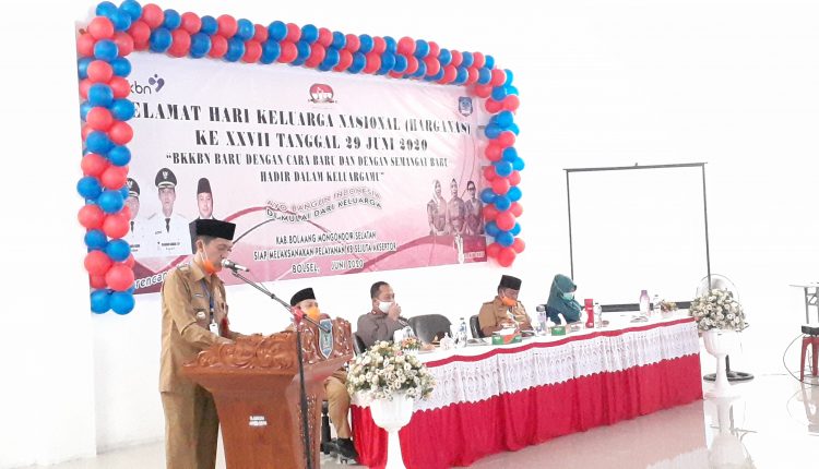 BOLSEL – Pemerintah Kabupaten Bolaang Mongondow Selatan (Bolsel), melalui Dinas Pengedalian Penduduk Keluarga Berencana, Pemberdayaan Perempuan dan Perlindungan Anak (DPP3A), menggelar acara peringatan Hari Keluarga Nasional (Harganas) ke XXVII, bertempat lantai tiga kantor Bupati, Senin (29/6/2020).