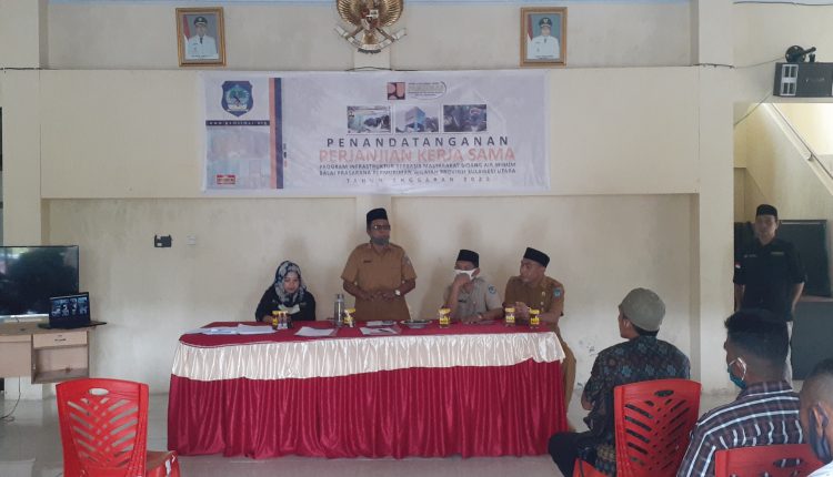 BOLSEL – Dinas Pekerjaan Umum dan Perumahan rakyat (PUPR) Kabupaten Bolaang Mongondow Selatan (Bolsel) menggelar penandatanganan perjanjian kerja sama program infrastuktur berbasis masyarakat bidang air minum balai prasarana pemukiman wilayah Provinsi Sulawesi Utara, Selasa (7/7/2020), bertempat di kantor Bapelitbandagda.