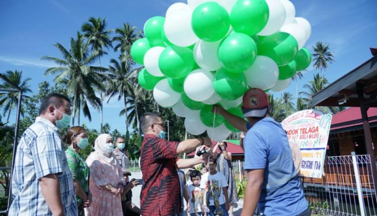 KOTAMOBAGU– Wakil Wali Kota (Wawali) Kotamobagu Nayodo Koerniawan, S.H., didampingi Ketua TP-PKK Kotamobagu Ny. Anki Taurina Mokoginta, ST., ME., menghadiri Grand Opening Restoran Pondok Telaga, Desa Bungko Kecamatan Kotamobagu Selatan, Jum’at (17/07/2020).