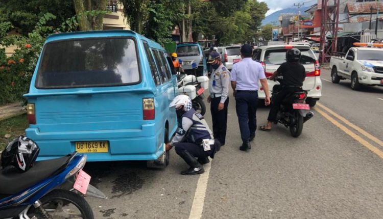 KOTAMOBAGU– Tim Dinas Perhubungan (Dishub) Kota Kotamobagu kembali melakukan pengembosan ban terhadap pengendara yang masih melakukan parkir liar di terminal bayangan yang ada di Jln. Adampe Dolot, Kelurahan Mogolaing, Kecamatan Kotamobagu Barat, Kamis (23/07/2020).