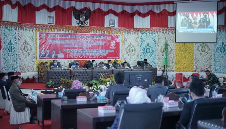 Dalam sidang paripurna tersebut turut dihadiri forkompinda kota Kotamobagu dan Pimpinan OPD kota Kotamobagu dan acara tersebut digelar dengan menerapkan protokol penanganan covid-19.