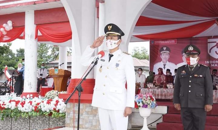 BOLSEL – Upacara peringatan Hari Ulang Tahun (HUT) Republik Indonesia ke-75 di Pemerintah Bolaang Mongondow Selatan (Bolsel), diselenggarakan secara terbatas dan dengan protokol kesehatan yang ketat, berlangsung di lapangan Molibagu, Kecamatan Bolaang Uki, Senin (17/08/2020).