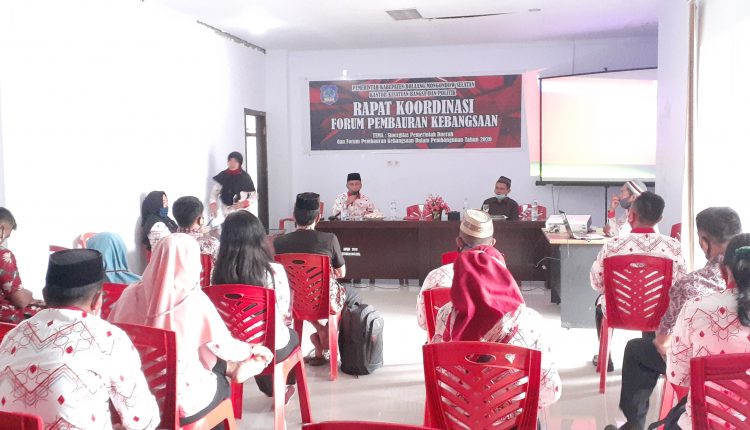 Forum Pembauran Kebangsaan dalam pembagunan Tahun 2020 menjadi tema sentral dalam Rapat Koordinasi (Rakor) Forum Pembauran Kebangsaan (FPK), Kabupaten Bolaang Mongondow Selatan, berlangsung kantor DPRD Bolsel, Kamis (27/8/2020).