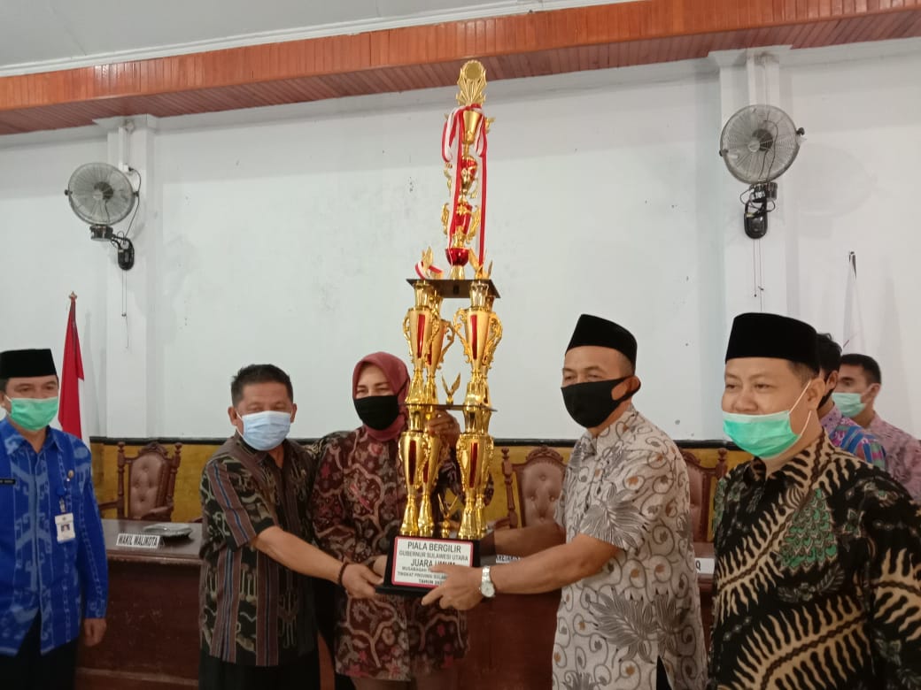 KOTAMOBAGU– Pemerintah Kota menyambut kedatangan kontingen kafilah Kotamobagu yang sukses menyabet juara umum pada lomba Musabaqah Tilawatil Qur’an (MTQ) XXVIII tingkat Provinsi Sulawesi Utara, bertempat di Aula rumah dinas wali kota, Kamis (03/09/2020).