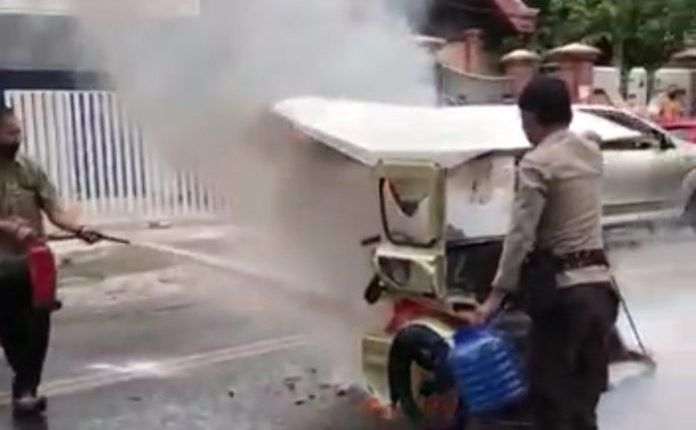 NM yang diduga sudah emosi, kemudian langsung membakar bentor miliknya sehingga mengakibatkan macet.