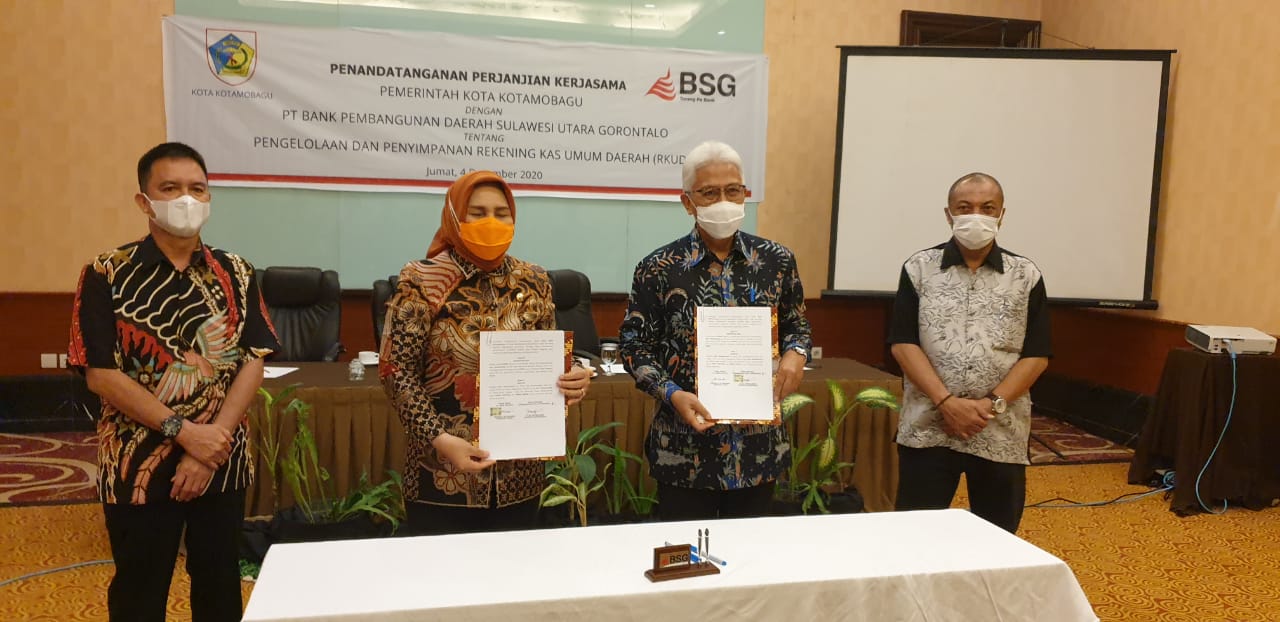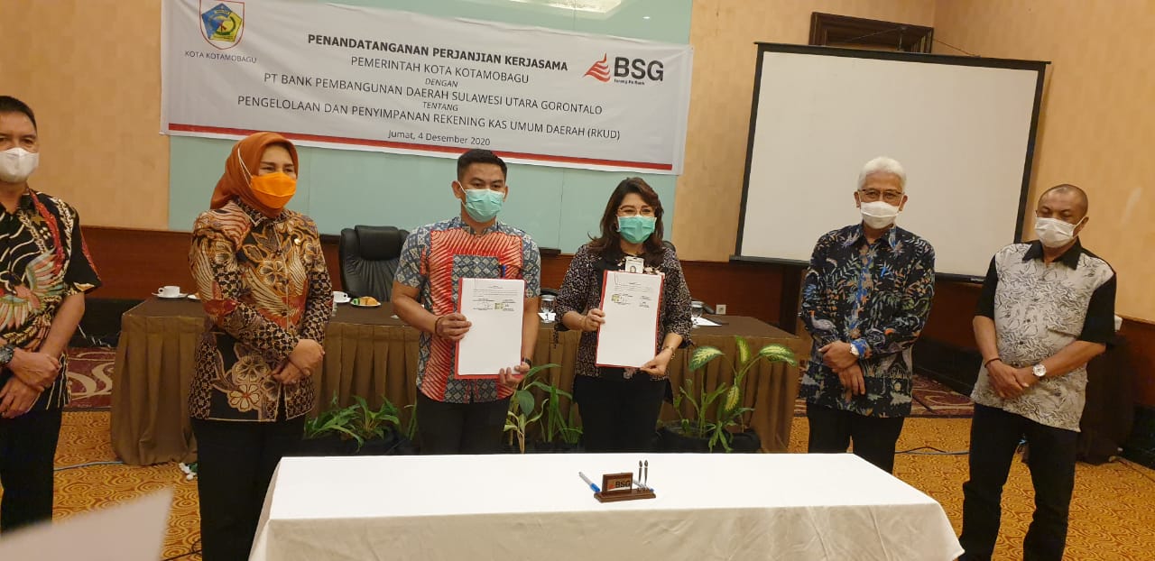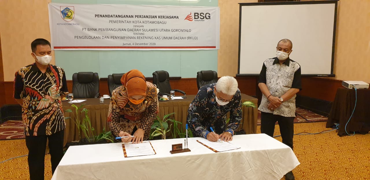 Hal ini dituangkan dalam penandatanganan Memorandum of Understanding (MoU) atau Nota Kesepahaman yang ditandatangani oleh Walikota Kotamobagu, Ir. Tatong Bara dengan Direktur Utama Bank SulutGo, Jeffry Dendeng yang dilaksanakan di Swiss-Bell Hotel Maleosan Manado, Jumat (04/12/2020).