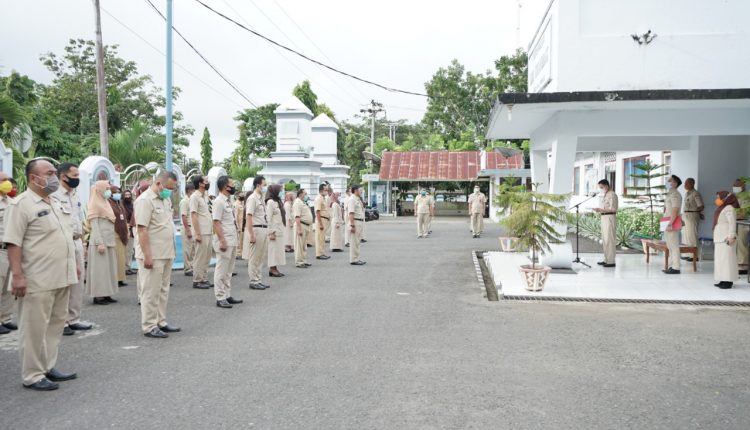 Sekertaris Daerah (Sekda) Sande Dodo mewakili Wali Kota Tatong Bara, pada Apel perdana, Senin (04/12/2021), meminta ASN lebih meningkatkan semangat kinerja dalam memberikan pelayanan terbaik kepada masyarakat sebagai pengabdian terhadap daerah.