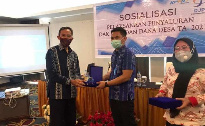 Penghargaan yang diserahkan Kepala KPPN Kotamobagu, Urip Burhan, diterima langsung oleh Kepala Badan Pengelolaan Keuangan Daerah (BPKD) Kotamobagu, Pra Sugiarto Yunus, pada kegiatan Sosialisasi pelaksanaan penyaluran DAK fisik dan dana desa tahun 2021, bertempat di Hotel Sutanraja Kotamobagu.