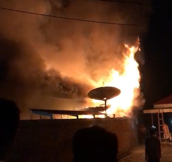 Belum diketahui penyebab kebakaran, namun saat ini Petugas Pemadam Kebakaran bersama warga tengah melakukan upaya pemadaman api tersebut.