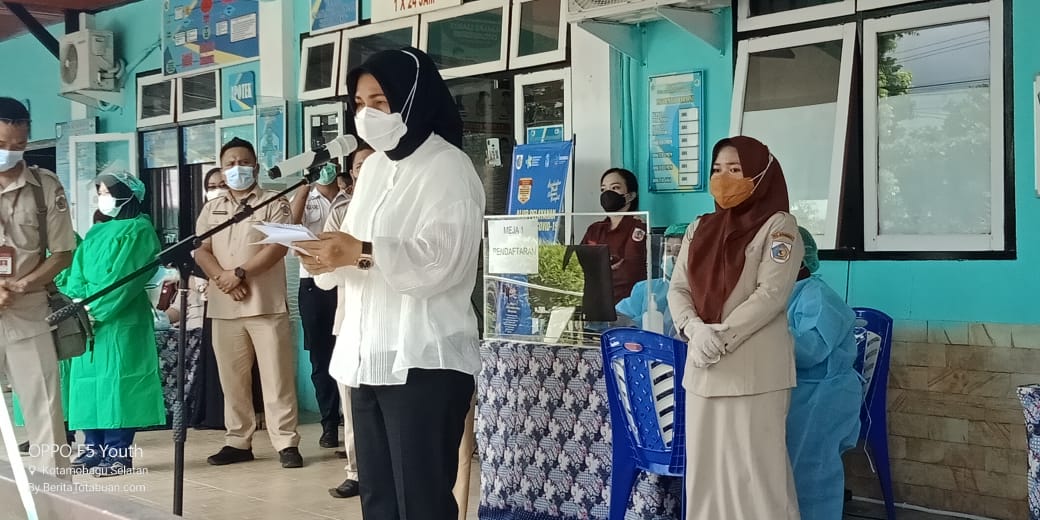 KOTAMOBAGU– Wali Kota Kotamobagu Ir Hj Tatong Bara, melakukan pencanangan gerakan vaksinasi covid-19 bertempat di Puskesmas Motoboi Kecil Kecamatan Kotamobagu Selatan,Senin 1 Febuari 2021.