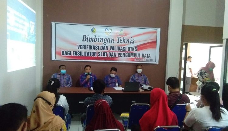 KOTAMOBAGU– Dinas Sosial Kota Kotamobagu menggelar Bimbingan Teknis (Bimtek) Verifikasi dan Validasi Data Terpadu Kesejahteraan Sosial (DTKS) bagi Fasilitator dan Pengumpul Data Tingkat Desa dan Kelurahan se-Kota Kotamobagu, Kamis (1/4/2021), di Kantor Dinsos Kotamobagu, Jalan Kampus, Kecamatan Kotamobagu Barat.