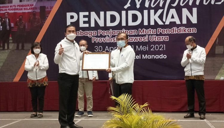 Penghargaan yang diserahkan langsung oleh Lembaga Penjamin Mutu Pendidikan (LPMP) Provinsi Sulawesi Utara (Sulut) itu, diterima langsung oleh Bupati Boltim diwakili Sekertaris Daerah Sonny Warokkah, pada kegiatan Mapalus Pendidikan, di Hotel Four Point Manado, Jumat (30/4/2021).