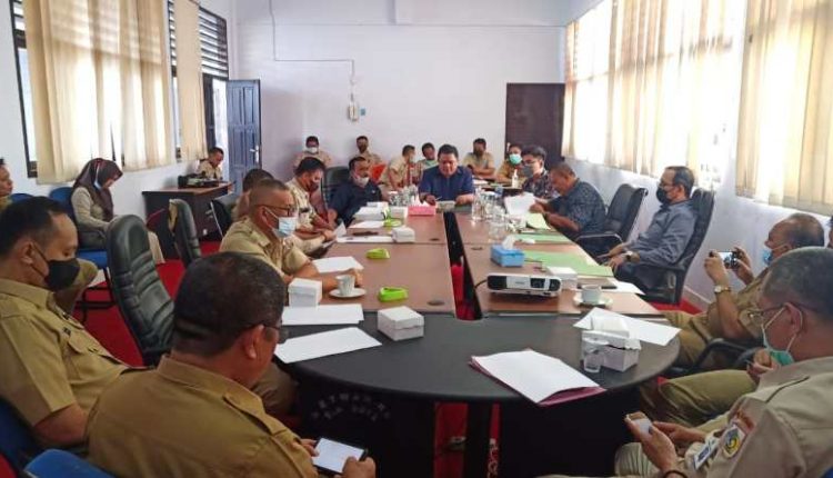 Rapat pembahasan ini digelar di ruangan Bammus dipimpin wakil ketua DPRD Syarifudin Djuaidi Mokodongan .