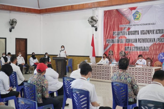 KOTAMOBAGU- Kelompok Kerja Perumahan dan Kawasan Permukiman Kotamobagu resmi dilantik, Rabu ((9/6/2021). Kelompok Kerja tersebut, dilantik langsung oleh Wali Kota Ir Hj tatong Bara, di Rumah Dinas Wali Kota.