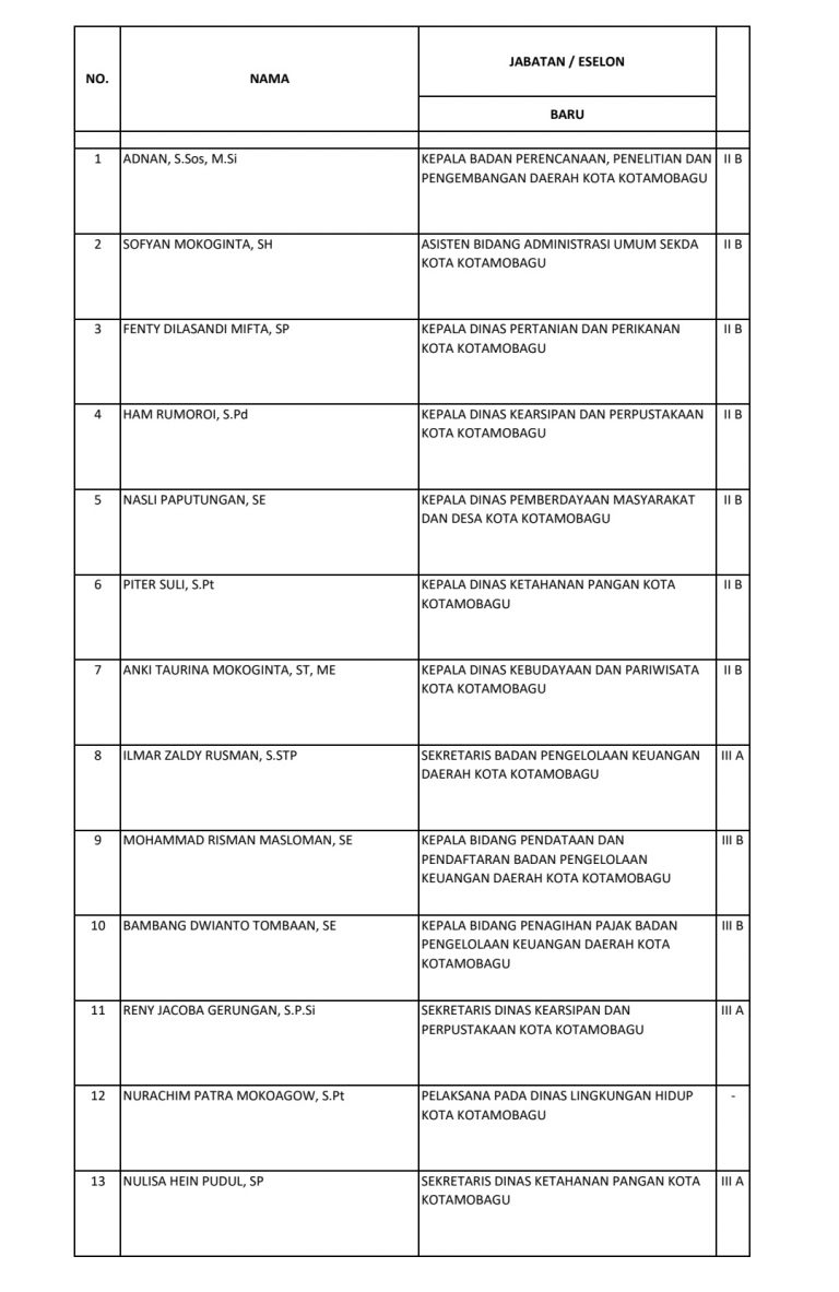 KOTAMOBAGU- Sebanyak 125 Pejabat Struktural dan Fungsional di lingkungan Pemerintah Kota Kotamobagu resmi dilantik.