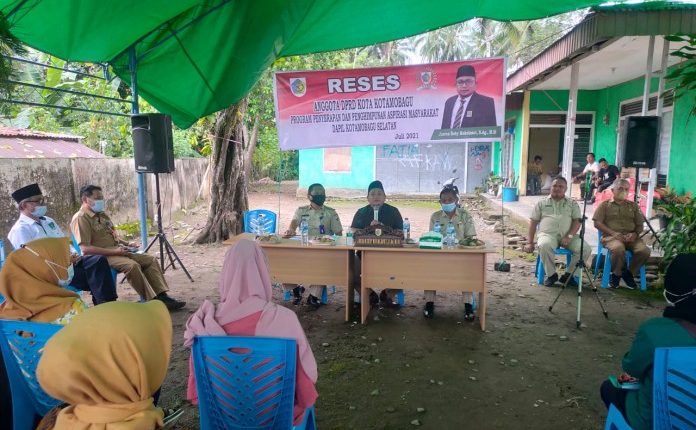 Seperti salah satu aleg dapil Kotamobagu Selatan, Jusran Deby Mokolanot, SAg, MSi. Eby sapaan akrabnya menggelar reses di Desa Kopandakan Satu Kecamatan Kotamobagu Selatan, desa tersebut merupakan kampung halamannya, Senin (5/7/2021).