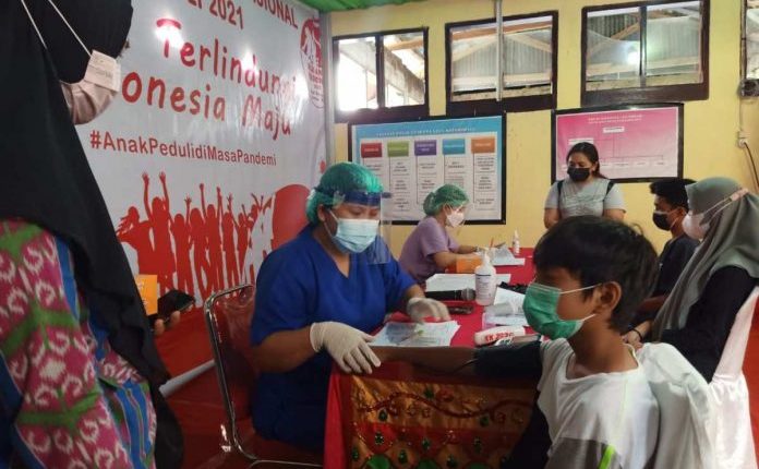 KOTAMOBAGU- Sebanyak 120 anak di yang tersebar di Kota Kotamobagu mengikuti vaksinasi di Dinas Pemberdayaan Perempuan dan Perlindungan Anak (DP3A), Kamis (22/07/2021).