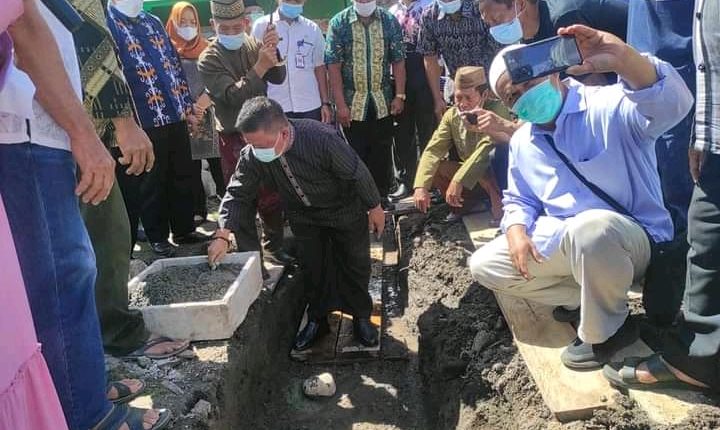 KOTAMOBAGU- Wakili Wali Kota Kotamobagu Ir Tatong Bara, Wakil Wali Kota Kotamobagu, Nayodo Koerniawan, hadiri peletakan batu pertama pembangunan Masjid Az-Zikra Desa Poyowa Kecil, Rabu (4/8).