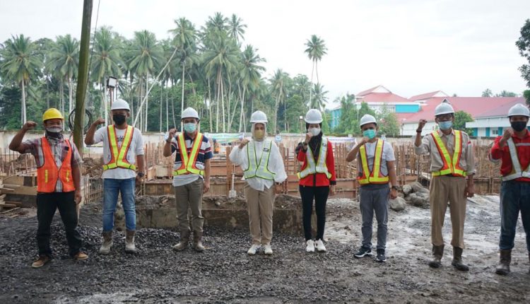 KOTAMOBAGU- Wali Kota Kotamobagu, Ir. Hj. Tatong Bara turun langsung maninjau progress pembangunan Gedung Isolasi di Rumah Sakit Umum Daerah (RSUD) Kotamobagu, Jumat (6/08/2021).