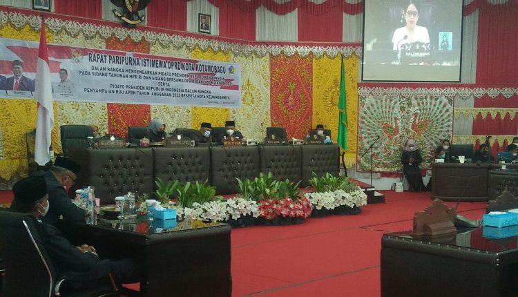 Wali Kota Dengarkan Pidato Presiden Dalam Rangka HUT RI ke 76 Pada Rapat Paripurna DPRD Kotamobagu