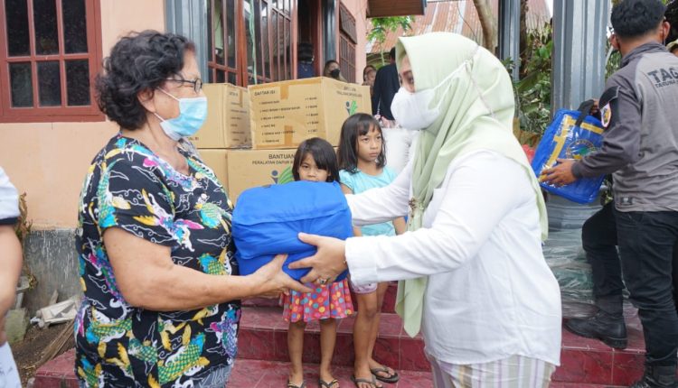 Bantuan yang diserahkan Asisten II Pemkot Kotamobagu, Sitti Rafiqah Bora, SE tersebut, diantaranya adalah sejumlah Bahan Kebutuhan Pokok, seragam sekolah, termasuk peralatan dapur, selimut, terpal dan bantuan lainnya.