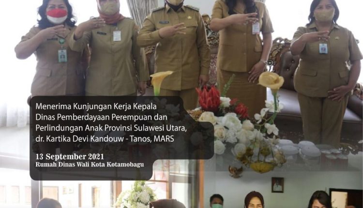 KOTAMOBAGU- Wali Kota Kotamobagu, Ir. Hj. Tatong Bara, Senin (13/9) siang, menerima kunjungan kerja Kepala Dinas Pemberdayaan Perempuan dan Perlindungan Anak Provinsi Sulawesi Utara, dr. Kartika Devi Kandouw – Tanos, MARS.