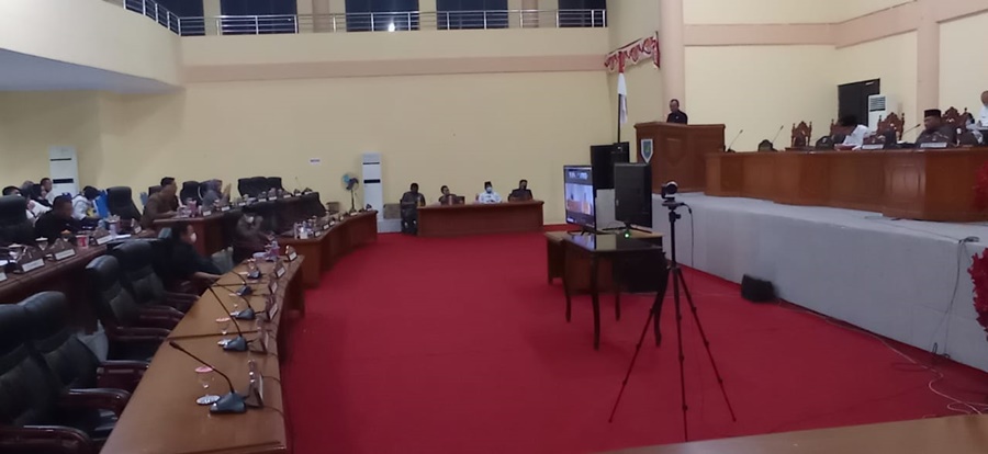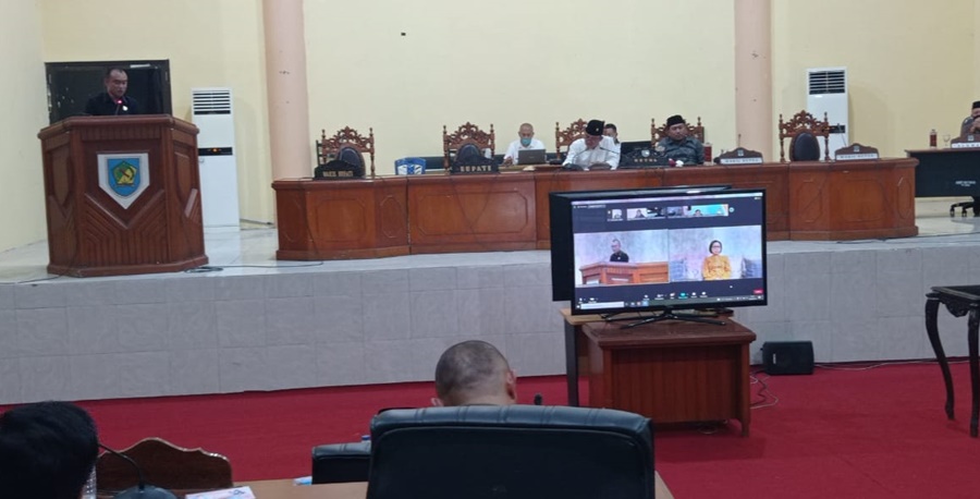 BOLMONG,DPRD- Dewan Perwakilan Rakyat Daerah (DPRD) Kabupaten Bolaang Mongondow (Bolmong) menggelar paripurna pengesahan rancangan Kebijakan Umum Anggaran Perubahan (KUPA) Prioritas Plafon Anggaran Sementara (PPAS) Anggaran Pendapatan Belanja Daerah (APBD) tahun 2021 melalui daring.