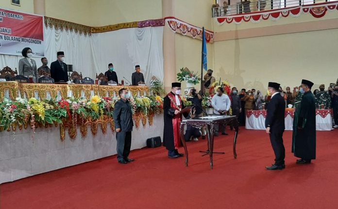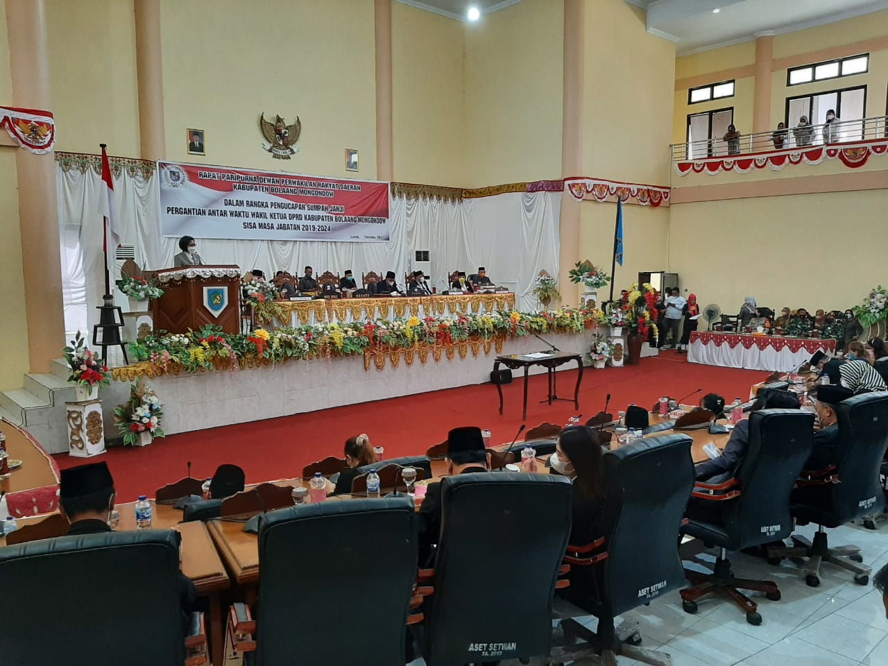 Sidang Paripurna DPRD Kabupaten Bolaang Mongondow dalam rangka pengambilan sumpah janji Pergantian Antar Waktu (PAW) Wakil Ketua DPRD Bolmong sisa masa jabatan 2019-2024 itu dimpin langsung Ketua DPRD Walty Komaling dan di dampingi Wakil Ketua Hi Sukron Mamonto.