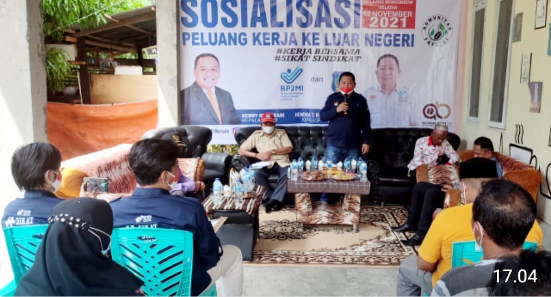 SULUT- UPT BP2MI Manado sosialisasikan peluang kerja ke luar negeri di hadapan 150 peserta di Desa Milangodaa Kabupaten Bolaang Mongondow Selatan (Bolsel). Kamis tanggal 18 November 2021.
