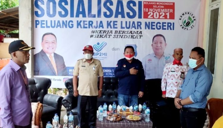 SULUT- UPT BP2MI Manado sosialisasikan peluang kerja ke luar negeri di hadapan 150 peserta di Desa Milangodaa Kabupaten Bolaang Mongondow Selatan (Bolsel). Kamis tanggal 18 November 2021.