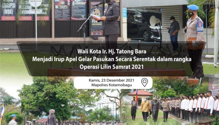 KOTAMOBAGU- Wali Kota Kotamobagu, Ir Tatong Bara, memimpin Apel Pasukan Operasi Lilin Samrat 2021 bertempat di Mapolres Kotamobagu, dalam rangka menyambut perayaan Natal dan Tahun baru (Nataru) tahun 2021-2022, Kamis, (23/12).