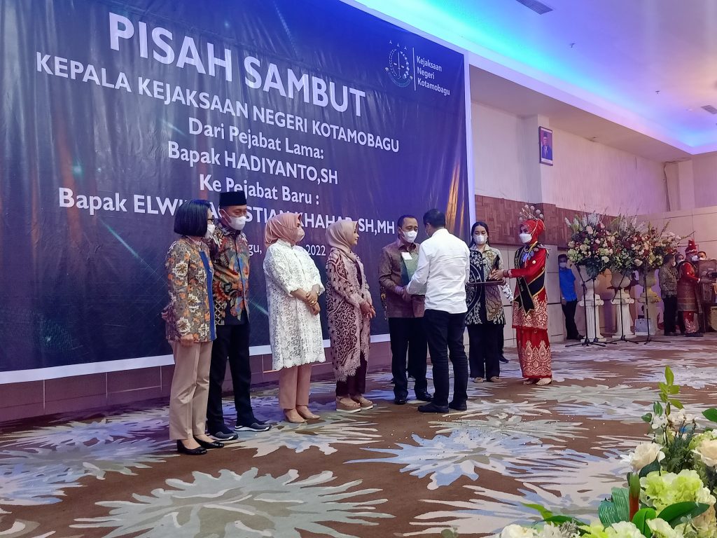 Bupati Sam Sachrul Mamonto mengapresiasi semua dedikasi dan tugas yang telah dikerjakan oleh pejabat lama Kajari Kotamobagu Hadiyanto.