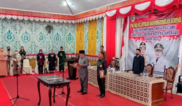 KOTAMOBAGU- Pemerintah Kotamobagu (Pemkot) menggelar pelantikan dan pengambilan sumpah untuk sekertaris daerah (Sekda) yang baru yakni Sofyan Mokoginta SH, Jumat (1/4/2022) sekira pukul 09.00 Wita hingga selesai.