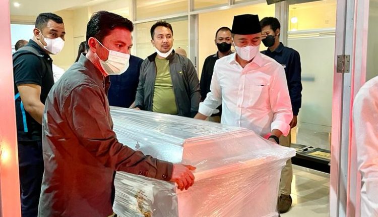 BOLTIM – Bupati Bolaang Mongondow timur, Sam Sachrul Mamonto, melayat jenazah Almarhum Herson Mayulu di Human Remais Transit Lounge Gedung Duty Free Terminal Kargo, Bandara Soekarno Hatta, Cengkareng, Banten, Minggu (17/4).