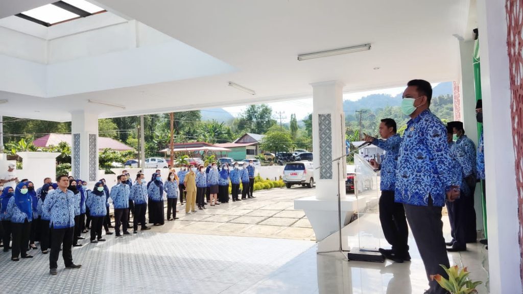 Dalam sambutan, Bupati menekankan tentang tri matra pengabdian ASN antara lain, Disiplin, Profesional dan Loyalitas.