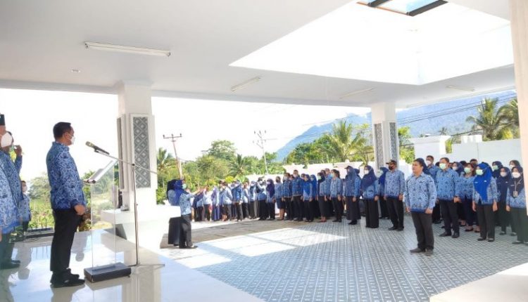 Dalam sambutan, Bupati menekankan tentang tri matra pengabdian ASN antara lain, Disiplin, Profesional dan Loyalitas.