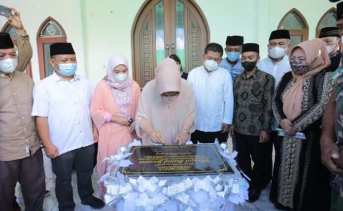KOTAMOBAGU- WaliKota Kotamobagu Ir Hj Tatong Bara, meresmikan Masjid Baitul Jannah di Kelurahan Mongondow Kecamatan Kotamobagu Selatan, Senin (16/5/2022).