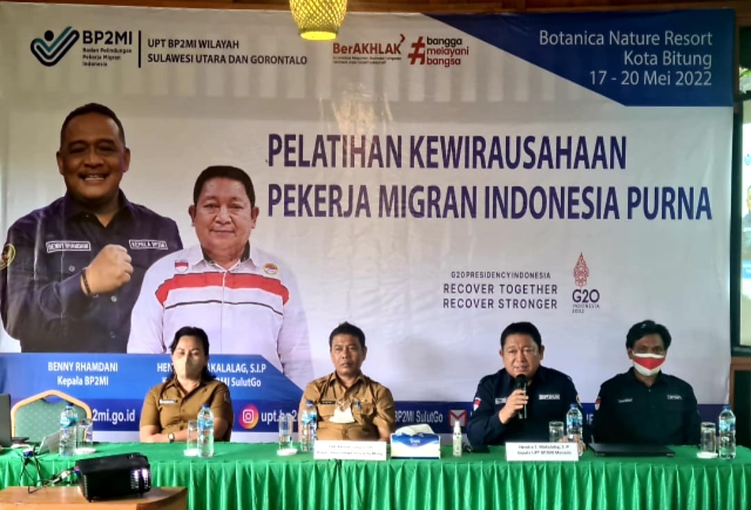 SULUT- UPT BP2MI SulutGo secara perdana mengadakan pelatihan kewirausahaan bagi 20 PMI Purna asal Kelurahan Pinokalan dan Sagrat Weru Kota Bitung dan diadakan di Botanica Nature Resort Kota Bitung tanggal 17-20 Mei 2022.