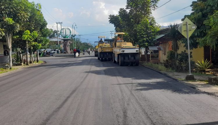 KOTAMOBAGU- Jalan Losik Lobud yang menghubungkan Desa Kopandakan dan Poyowa Kecil Kecamatan Kotamobagu Selatan diaspal hotmix.