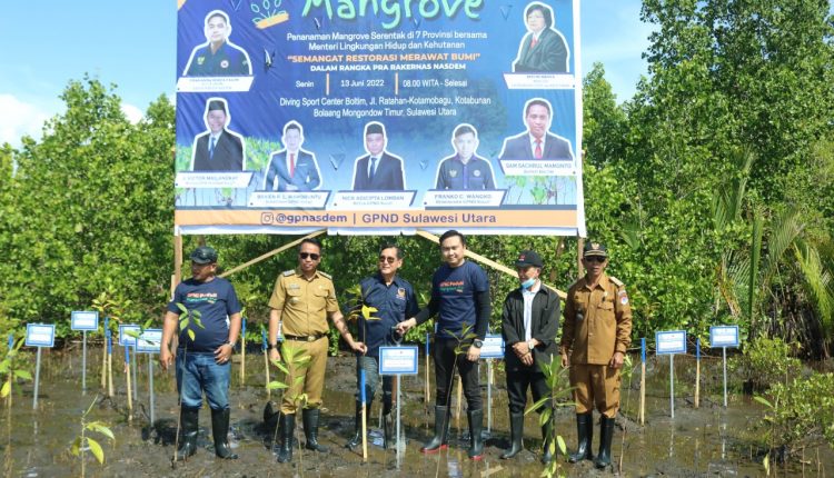 Penanaman Pohon Mangrove dengan tema “SEMANGAT RESTORASI MERAWAT BUMI”, Kementerian Lingkungan Hidup dan Kehutanan bekerja sama dengan PP Garda Pemuda Nasdem dilakukan serentak secara virtual dengan Tujuh Provinsi.