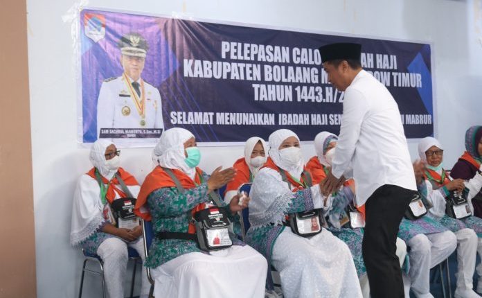 BOLTIM- Bupati Kabupaten Bolaang Mongondow Timur (Boltim) Sam Sachrul Mamonto (SSM), melepas Jamaah Calon Haji (JCH) Asal Boltim. Minggu 28 Juni 2022, di Aula Kantor Bupati, Kemarin.