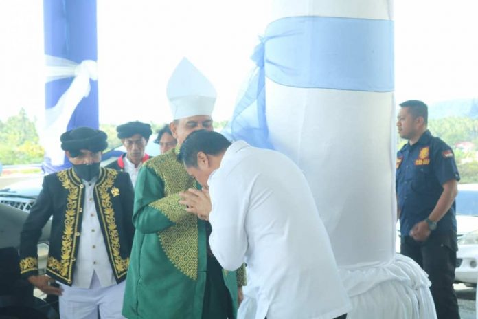 Kedatangan orang nomor satu di Kerajaan Ternate ini disambut oleh Bupati bersama jajaran Pemerintah Kabupaten (Pemkab) Boltim secara Adat Mongondow.