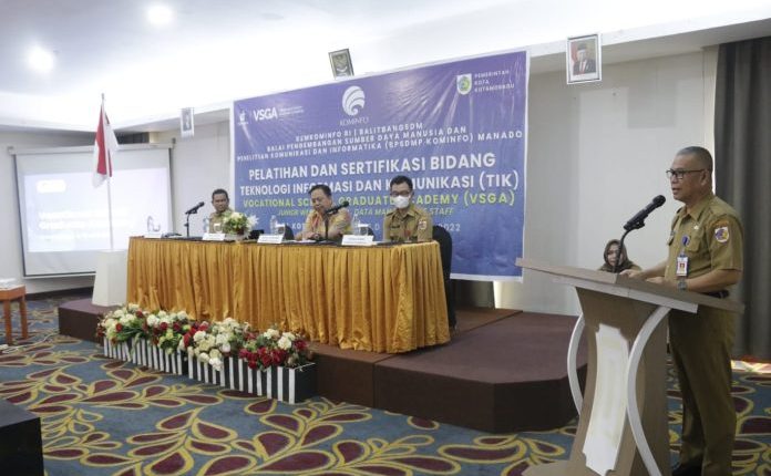 KOTAMOBAGU- Asisten 1 Pemerintah Kota Kotamobagu, Drs Teddy Makalalag, mewakili Wali Kota Kotamobagu membuka pelaksanaan Vocation School Graduate Academy (VSGA) Standar Kompetensi Kerja Nasional Indonesia (SKKNI) yang dilaksanakan Balai Pengembangan Sumber Daya Manusia dan Penilitian Komunikasi dan Informatika (BPSDMP – Kominfo) Kementerian Komunikasi dan Informatika Republik Indonesia. Senin (08/08/2022)