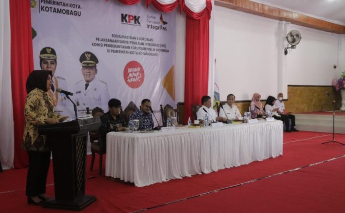 Walikota menjelaskan pelaksanaan survei penilaian integritas khususnya dilingkungan Pemerintah Kota Kotamobagu pada tahun 2021 menunjukan indeks survei penilaian integritas sebesar 79,3, sehubungan dengan nilai indeks tersebut, dalam rangka untuk menigkatkan indeks survei penilaian integritas tahun 2022, pemerintah daerah Kota kotamobagu telah melakukan berbagai upaya, diantaranya pencegahan korupsi dilingkungan Pemerintah Daerah Kota Kotamobagu termasuk optimalisasi pemanfaatan teknologi informasi untuk meningkatkan peran pemerintah dan pelayanan kepada masyarakat dari tingkat desa kelurahan, termasuk pengurusan perijinan maupun pengadaan barang dan jasa.