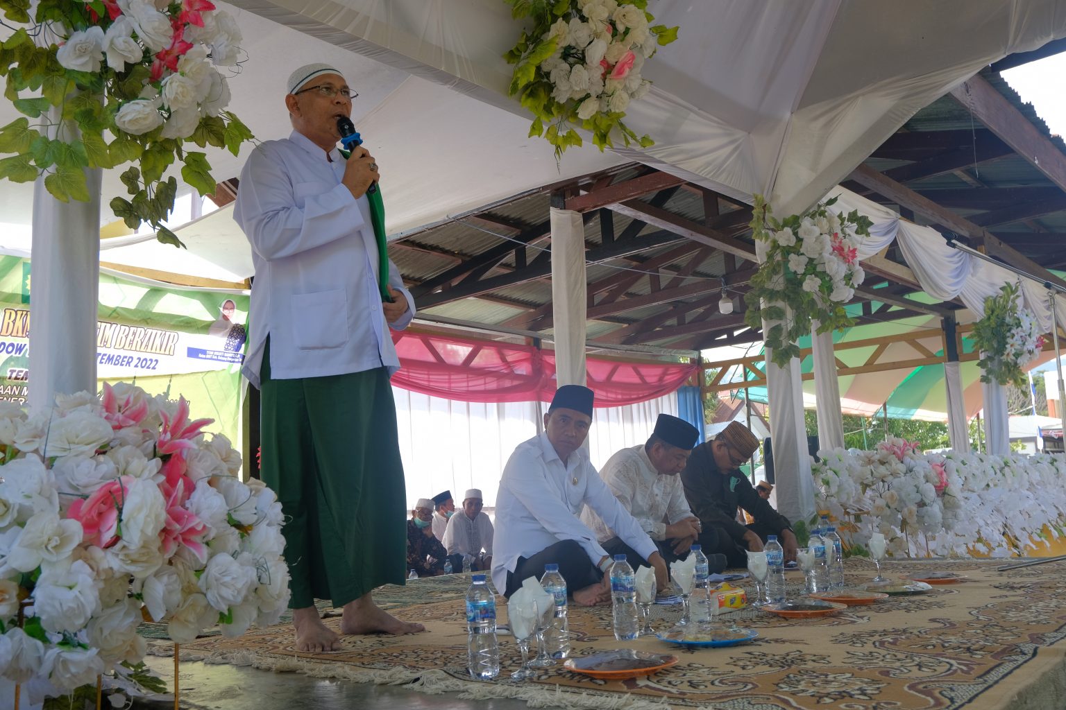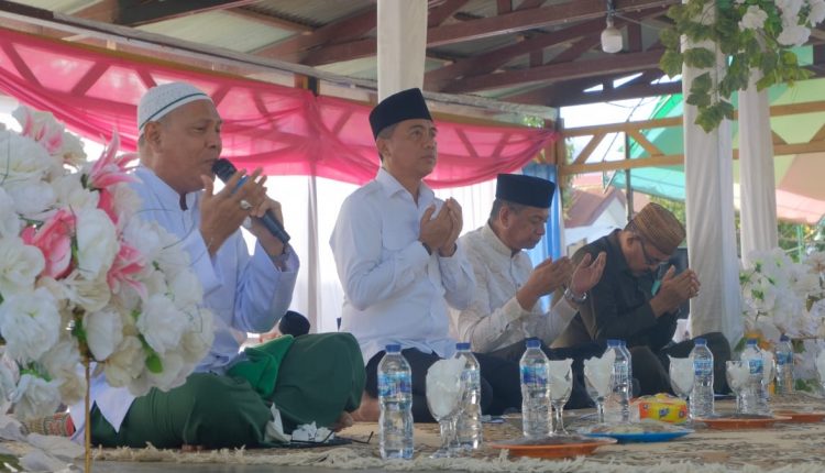 Dengan menundukan kepala Ustad Abdurrahman Mahrus memanjatkan doa berharap semua dapat lebih baik untuk Kabupaten Boltim di tangan Bupati Sam Sachrul Mamonto.
