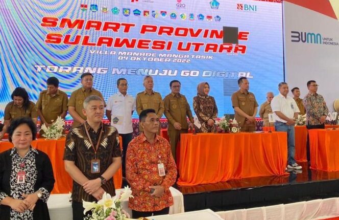 KOTAMOBAGU- Wali Kota Kotamobagu, Tatong Bara, menghadiri kegiatan Penandatanganan Memorandum of Understanding (MoU) dan Perjanjian Kerjasama (PKS) antara Pemerintah Provinsi Sulawesi Utara dan Pemerintah Kabupaten/Kota dengan Bank BNI serta penandatanganan PKS Smart Province dan PKS Smart City, di Vila Manare Manga Tasik, Minahasa, Selasa, 4 Oktober 2022.