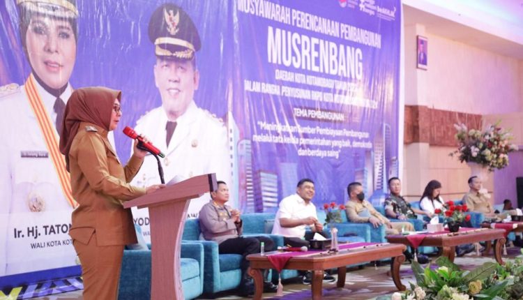 KOTAMOBAGU- Wali Kota Kotamobagu, Tatong Bara, membuka Musyawarah Rencana Pembangunan (Musrenbang) penyusunan Rencana Kerja Pemerintah Daerah (RKPD) Kota Kotamobagu Tahun 2024, Senin 27 Maret 2023.